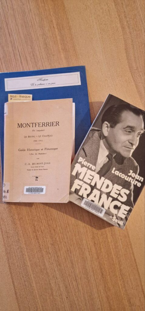 Ensuite Montferrier en Languedoc, de C-A Belmont-Joris, véritable plongée dans les origines de nos lieux familiers : on y apprend notamment que l’aqueduc fut imaginé dès le XIIIᵉ siècle avant de voir le jour au XVIIIᵉ, et que la porte de la rue Dufour accueillait autrefois les habitants venus écouter les arrêts seigneuriaux proclamés à la criée.
