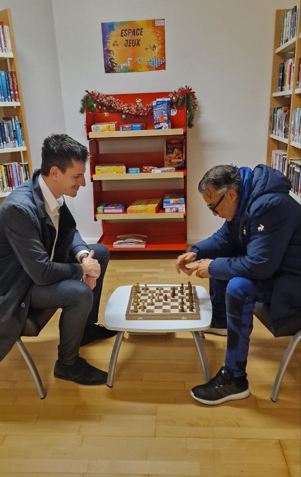 La bibliothèque demeure un écrin de culture. Elle est ce cadre de partage où s’émancipent petits et grands, cet endroit qui apaise, qui ouvre des horizons. Entre deux discussions, Lazare et moi nous sommes laissés tenter par une petite partie d’échecs.
