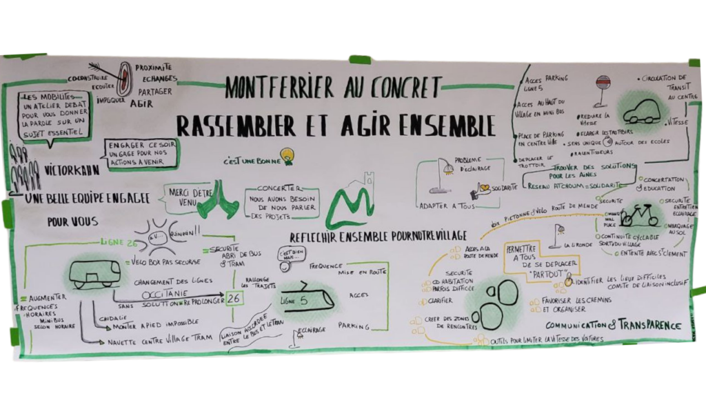Cet atelier a confirmé la richesse de l’expertise citoyenne et la capacité des habitants à formuler des analyses précises comme des propositions concrètes. Par la diversité des situations évoquées et la qualité des échanges, cette rencontre a permis de poser les bases d’un diagnostic solide et partagé des mobilités à Montferrier.