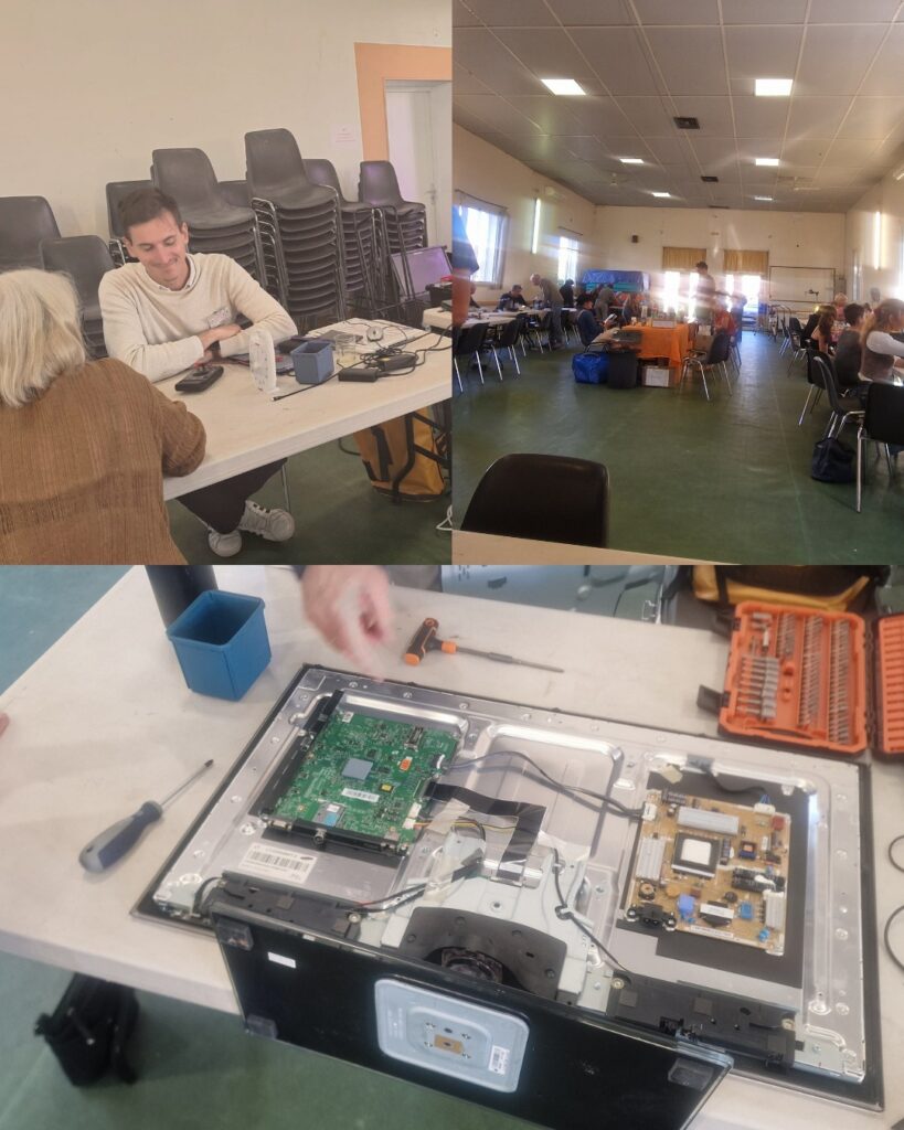 L’après-midi, rendez-vous au Repair Café Montferrier ! Philippe et moi, nous nous sommes attelés à la réparation d’un téléviseur et d’un minuteur. Du beau monde présent dans un esprit de partage, de transmission et de réutilisation !
