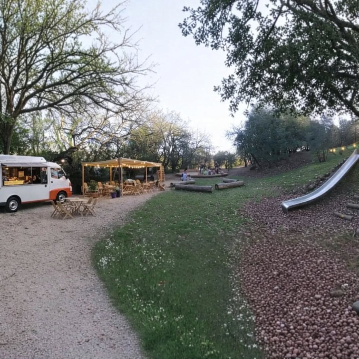 La Guinguette Gourmande Temporaire : Un foodtruck s’installe ponctuellement au cœur du site et s’accompagne d’une guinguette éphémère, conviviale et ouverte. Tables, bancs et espaces ombragés invitent familles, promeneurs et sportifs à faire une pause gourmande en toute simplicité, autour d’une crêpe, d’une glace ou d’un thé, dans un esprit festif et décontracté.